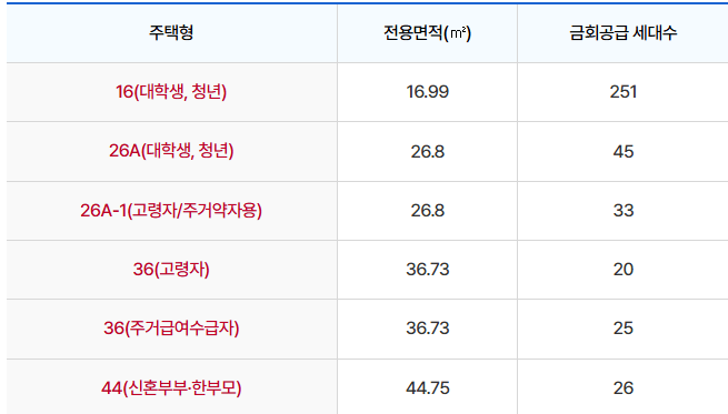 행복주택은 신청자격에 따라 신청할 수 있는 평형이 있습니다.